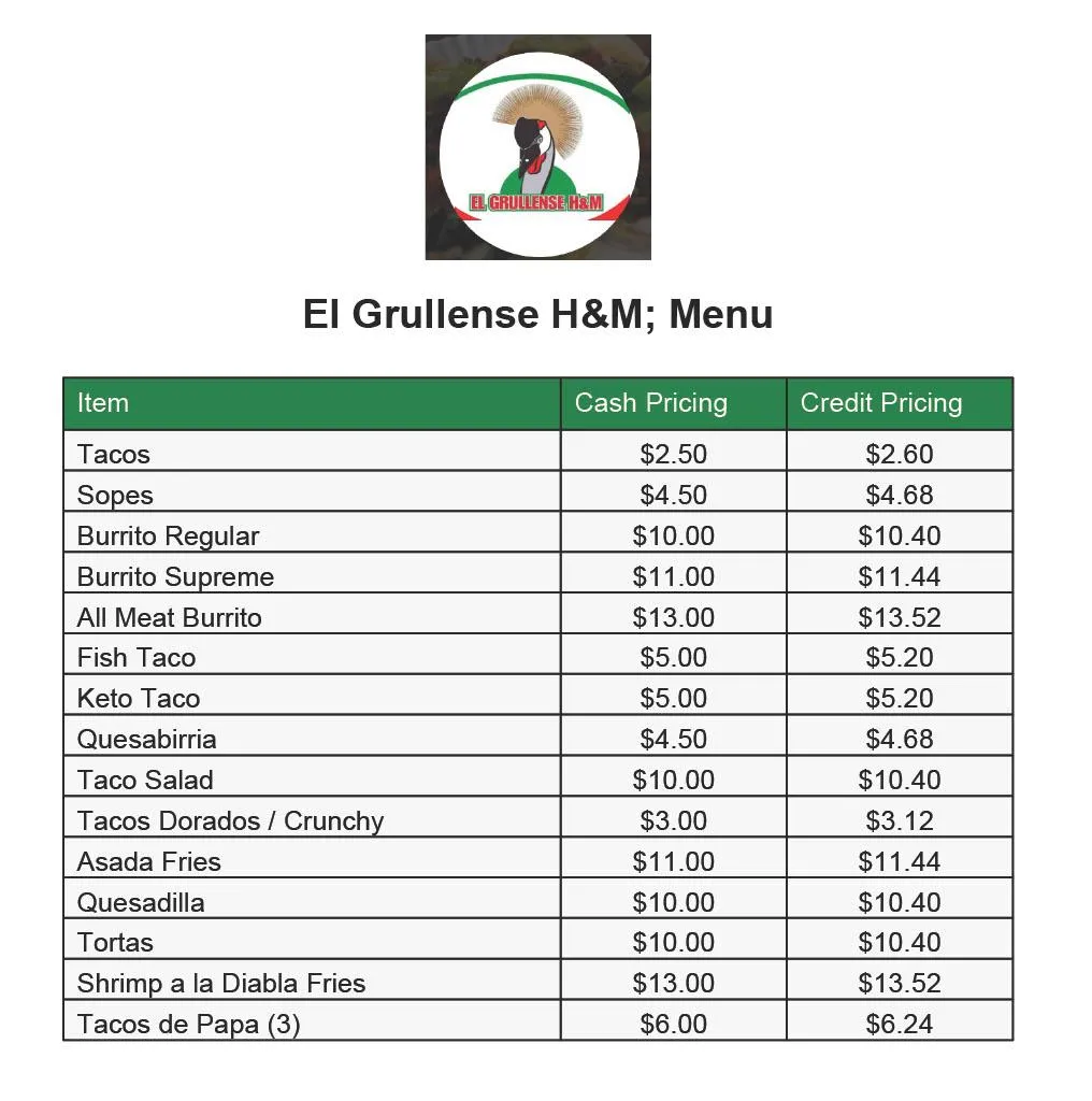 Menu Prices